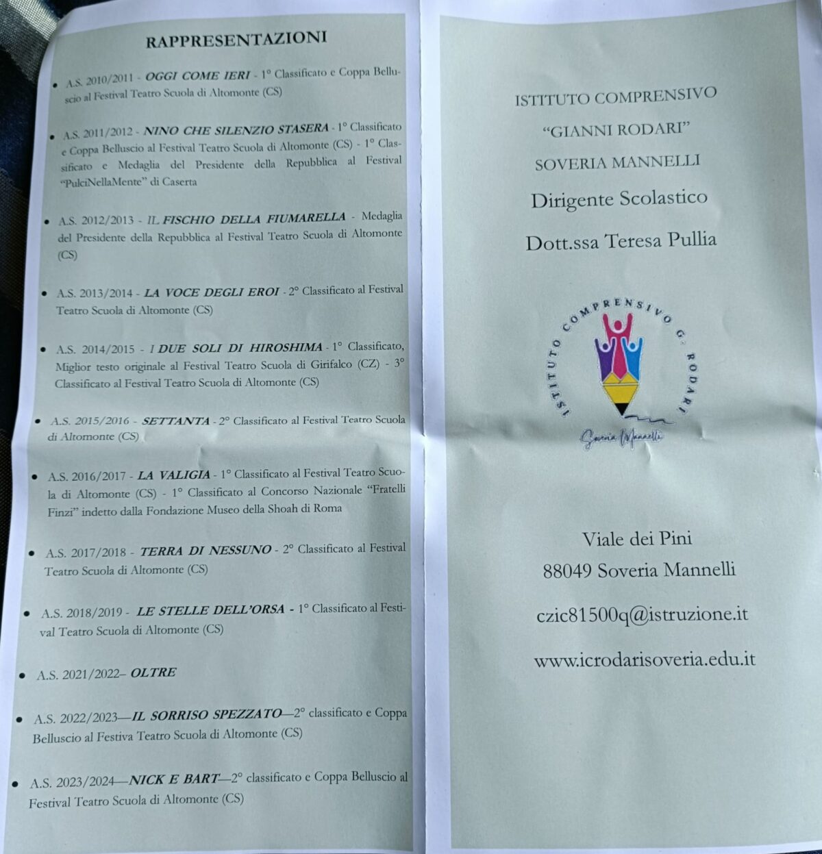 Un successone che si è ripetuto pure la mattina successiva con la rappresentazione per le scuole di Marzabotto. La sindaca Valentina Cuppi – ha raccontato ancora la signora – ha detto delle parole meravigliose sui nostri ragazzi, gli insegnanti, l’istituto “Rodari” di Soveria Mannelli e ribadendo la bravura e le emozioni che hanno trasmesso e per la partecipata interpretazione. Comunque ci tenevo si sapesse anche in Calabria il momento intenso quasi magico che abbiamo vissuto qui a Marzabotto.