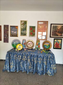 Non solo ciliegie, infatti, lungo le strade sanpietresi. All’interno del Palazzo Mazza, infatti la mostra “Arte nelle Mani” con una serie di stupende manifatture realizzate al telaio, ma anche gli strumenti storici usati per pettinare “cardare” la lana o l’arcolaio e tanti altri pezzi unici delle professioni artigianali di un tempo e oggetti che componevano l’arredamento delle abitazioni di una volta. Un altro angolo è stato dedicato alla personale di pittura di Nicola Iuliano, artista di Marcellinara, una vita passata in fabbrica nel Piemonte, ma una mano delicata e nello stesso tempo decisa, capace anche di tratteggi caldi e brillanti sulla sabbia (superficie estremamente ostica da affrontare col pennello in mano). Davvero interessante.