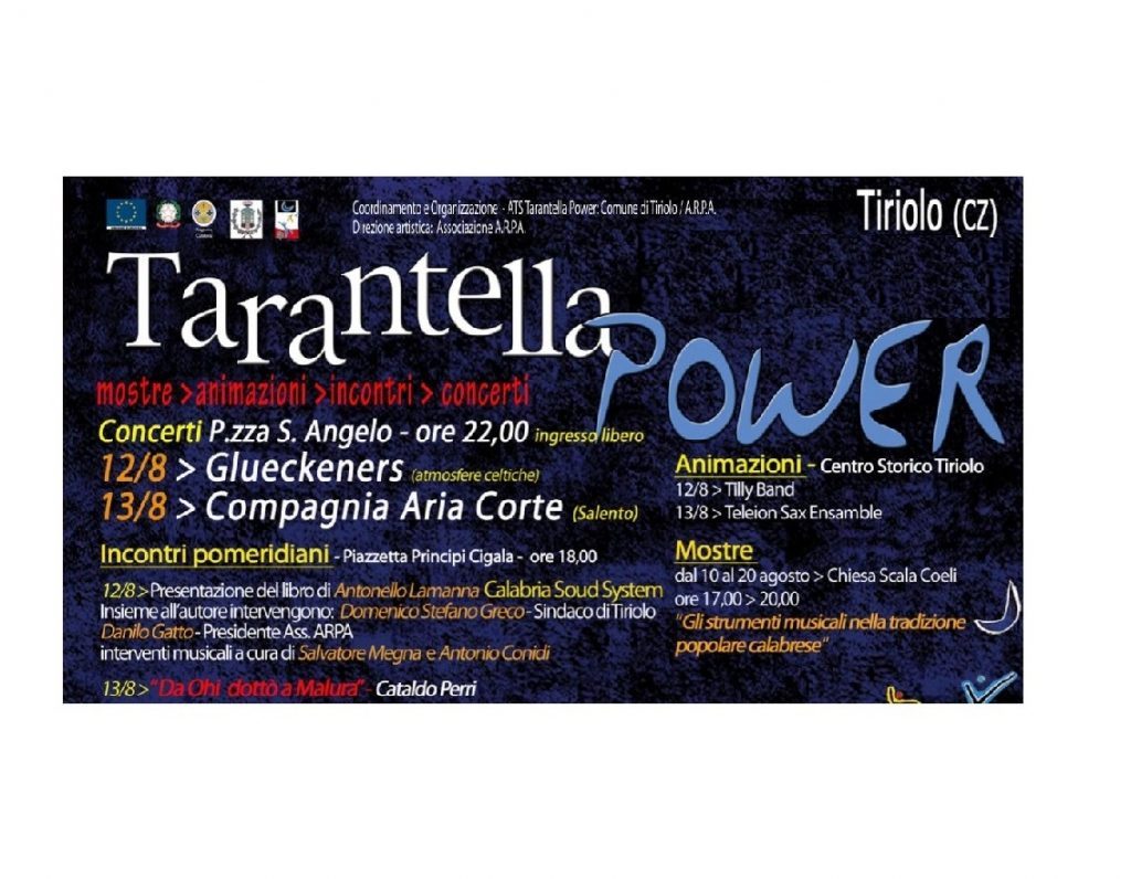 Tiriolo – Due giornate quelle del “Tarantella Power” che animeranno Tiriolo. La manifestazione “fortemente voluta” dall’amministrazione comunale che crede “nell’intreccio di musica e danza come strumento di valorizzazione delle risorse e delle vocazioni del territorio sotto il profilo storico, archeologico, enogastronomico e artigianale”.