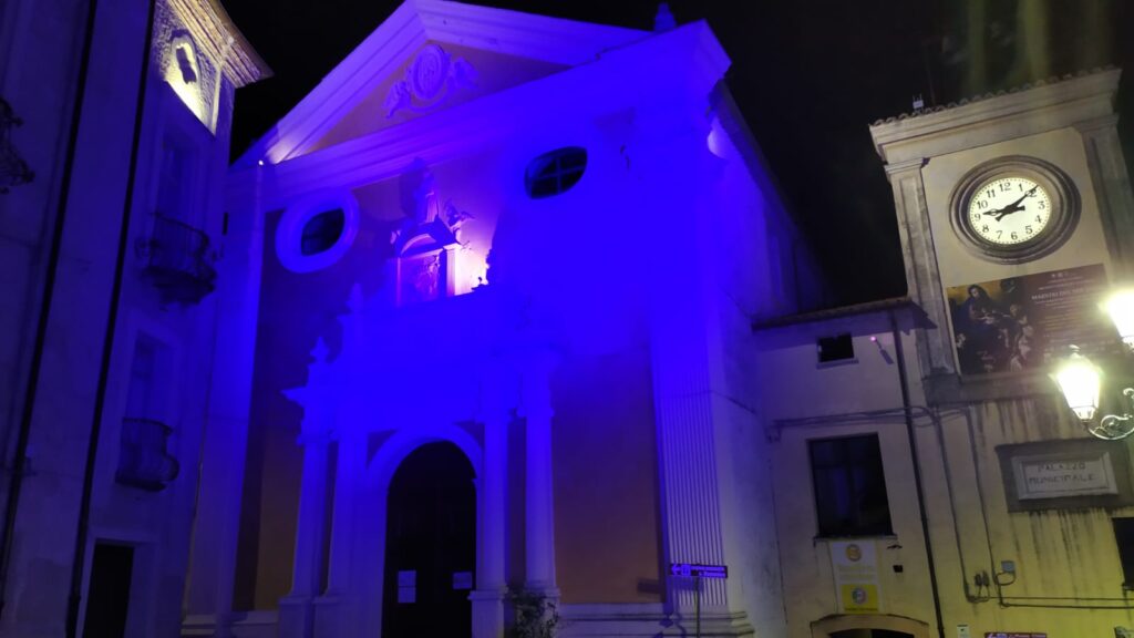 Sia la Chiesa madre e altri palazzi della piazza centrale si sono illuminati di blu per tenere alta l’attenzione attorno alle problematiche e alle inespresse potenzialità delle persone autistiche.