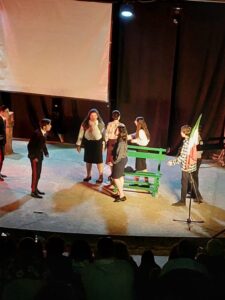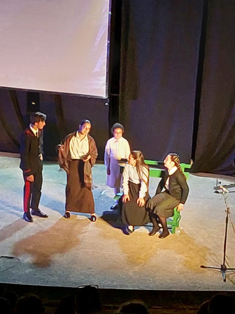 La rappresentazione si chiude con i saluti nominativi di tutti coloro che hanno collaborato e di tutti i ragazzi presenti, che hanno sfilato sul palco. Oltre una cinquantina, a dimostrazione del grande meritorio sforzo compiuto per realizzare un’ ennesima apprezzatissima edificante sperienza didattico-educativa e formativa. Non solo per i protagonisti. Ma anche per i numerosi spettatori, che, lasciate nelle case le immagini televisive delle distruzioni , devastazioni, crudeltà della guerra in corso in Ucraina, hanno potuto godere per oltre due ore di uno spettacolo che ha indicato dal “vivo”, quanto crudele, ingiusta e disumana è la Guerra in ogni suo aspetto e conseguenze.