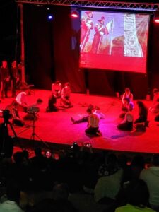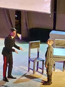 Sapevamo di andare ad assistere ad una rappresentazione, intensa nei gesti, nei dialoghi, nei monologhi, nelle tonalità dei cori, nelle musiche di sottofondo e negli interventi delle voci fuori campo, o nelle comunicazioni esterne, informative sulle fasi storiche fatte scorrere su un ampio telo, affidate a una puntuale regia nello scorrimento degli episodi scelti e rappresentati. Sotto la padronanza professionale di Riccardo e Lino.