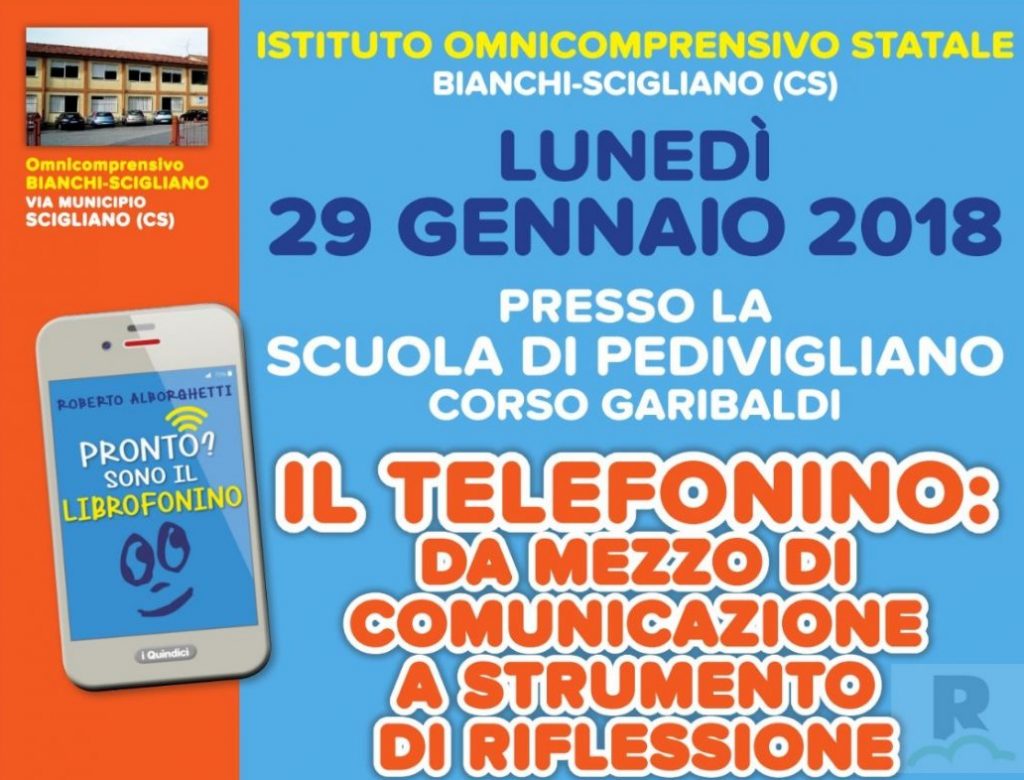 Alla presenza degli alunni della scuola Primaria e Secondaria di 1° di Scigliano, Pedivigliano, Borboruso e degli alunni dell’Istituto professionale per l’Agricoltura sono intervenuti: Antonella Leone sindaco di Pedivigliano; la professoressa Maria Francesca Amendola e il giornalista Roberto Alborghetti, autore del libretto “Pronto? Sono il librofonino!” edizioni i Quindici. Ha coordinato la professoressa Maria Gabriella Gallo.