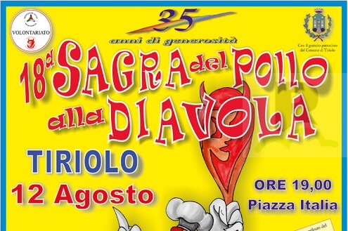 Sabato 12 agosto, a Tiriolo, in Piazza Italia, si svolgerà la diciottesima edizione della “Sagra del Pollo alla Diavola”, organizzata come sempre dall’Associazione di volontariato “Diavoli Rossi”, con in testa il suo presidente Domenico Guzzo.