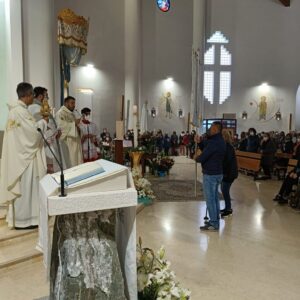 Fede e tanta emozione nel momento di preghiera del pomeriggio, la benedizione degli ammalati con il reliquiario, successivamente la Santa Messa e l’atto di consacrazione al Cuore Immacolato di Maria e la fiaccolata Mariana in Santuario “a nessuno sfugga l’importanza di oggi e dei giorni a seguire. Il reliquiario contente le lacrime uscite dal quadro miracoloso di Siracusa e raccolte nella sacra teca, arriva a Soveria Mannelli, per chiedere attraverso le lacrime di Maria il dono della consolazione e della fratellanza.