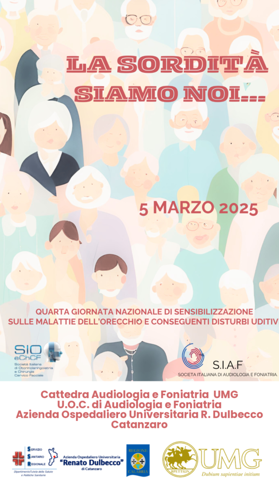 Il prof. Giuseppe Chiarella, docente ordinario di Audiologia e Foniatria dell’Università Magna Graecia di Catanzaro, evidenzia che le malattie dell’orecchio e i conseguenti disturbi uditivi sono estremamente frequenti. In continuità con il tema proposto lo scorso anno, l’Università Magna Graecia promuove la conoscenza delle problematiche legate ai disturbi uditivi, la prevenzione e la cura. Attraverso l’attività di informazione e sensibilizzazione su queste problematiche si vuole favorire il cambiamento di comportamenti potenzialmente dannosi per l’orecchio e l’udito. A tutte le età, infatti, è necessario proteggere l’udito dai suoni intensi per prevenire future conseguenze, ed è dunque indispensabile sensibilizzare all’uso corretto dei dispositivi uditivi e supportare coloro che soffrono di sordità. Il cambiamento della società nei confronti delle malattie dell’orecchio e dei disturbi uditivi parte dalla conoscenza del problema e dalla responsabilizzazione dei singoli. L’evento del 5 marzo intende focalizzare l’attenzione su questo fenomeno e stimolare approcci propositivi al problema.