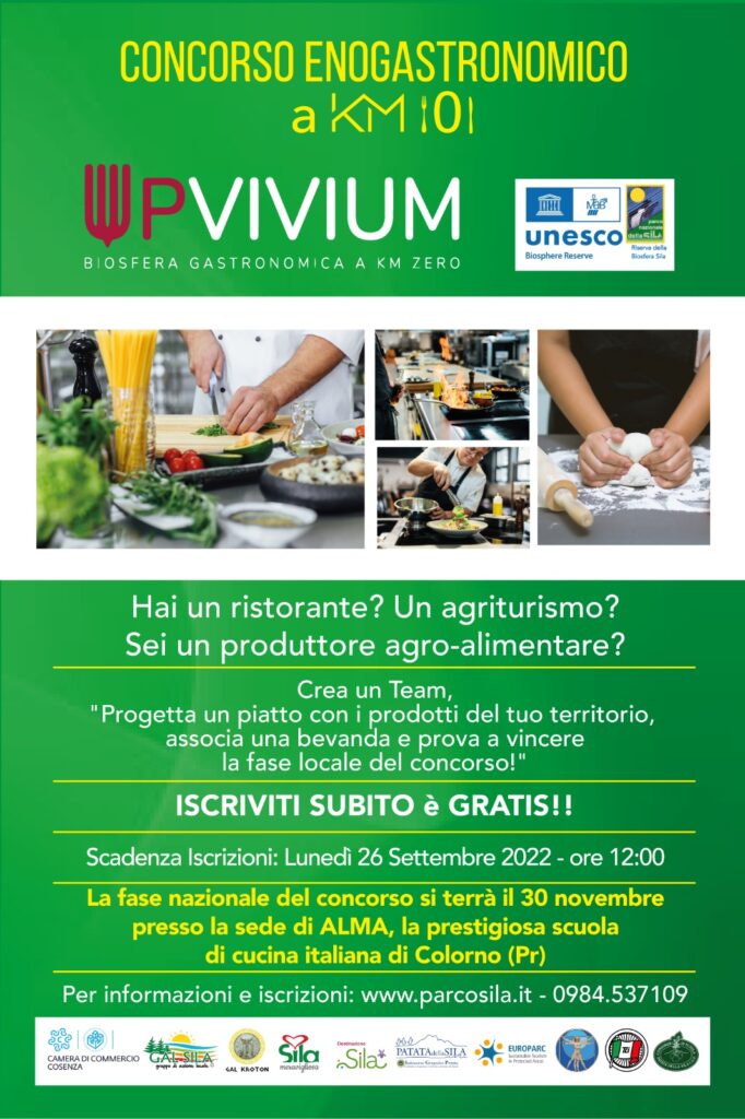 I vincitori della fase locale accederanno, inoltre, a quella nazionale che si terrà il 30 novembre presso la sede di Alma, prestigiosa scuola di cucina italiana di Colorno. «Tutto l’Ente Parco è assai entusiasta della ripresa di questo evento – commenta il presidente dott. Francesco Curcio – Un appuntamento che mira anche e soprattutto a far conoscere i nostri straordinari territori. Invitiamo, pertanto, i ristoratori e i produttori a rispondere in gran numero al nostro avviso. Buon Upvivium a tutti!».