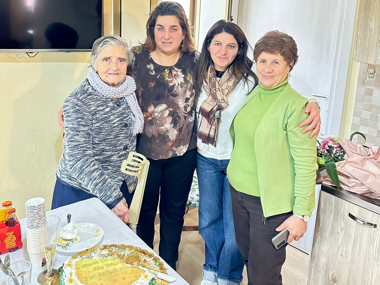 La folta rappresentanza dell’amministrazione comunale ha festeggiato con Zia Nunziata e i suoi familiari questo eccezionale avvenimento portandole il saluto e gli auguri di tutta la cittadinanza.